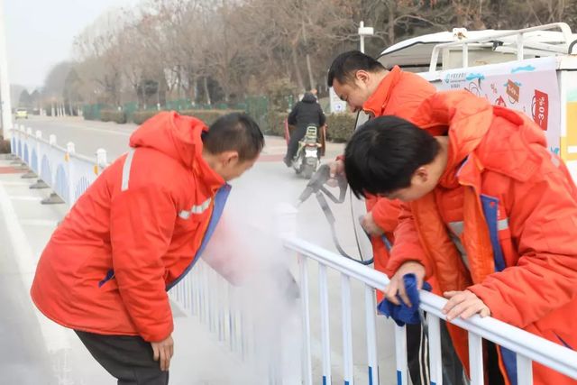 洗車工打開蒸汽噴頭,強勁的蒸汽會噴出來,洗車工手持噴槍,噴出的高壓熱蒸汽有獨特的熱分解功能,能迅速軟化站牌、護欄上的泥沙、鳥糞、蟲尸、蟲膠和污漬,并通過蒸汽快速將其去除。經(jīng)過一個小時的高溫清洗過后,一排排嶄新的公共設(shè)施映入了大家的眼簾,同時公共設(shè)施的漆面達到了煥然一新的效果。